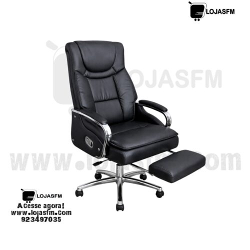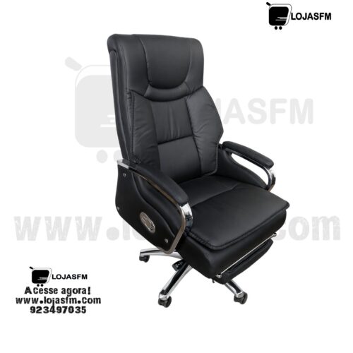 Com design ergonómico e acabamento premium em couro sintético, esta cadeira oferece uma experiência superior. Possui função reclinável e apoio para pés retrátil, permitindo momentos de descanso mesmo durante o trabalho.