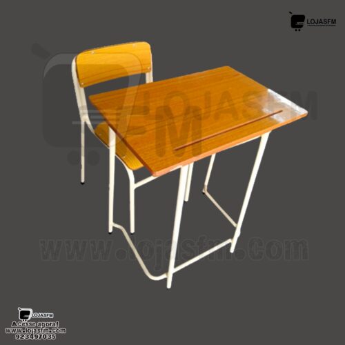 Descrição: A Carteira Escolar Individual da LOJASFM é ideal para instituições que valorizam organização, durabilidade e conforto. Com estrutura metálica na cor creme e acabamento em madeira clara, ela oferece praticidade e estilo para o dia a dia dos alunos.