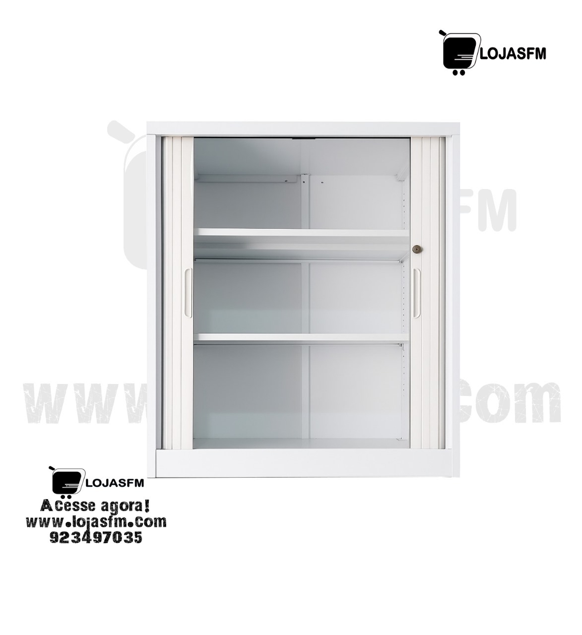 Armário base com portas persiana, ideal para ambientes corporativos, clínicos, laboratoriais ou residenciais. Fabricado em estrutura metálica com acabamento branco, oferece segurança, organização e visibilidade dos itens armazenados.
