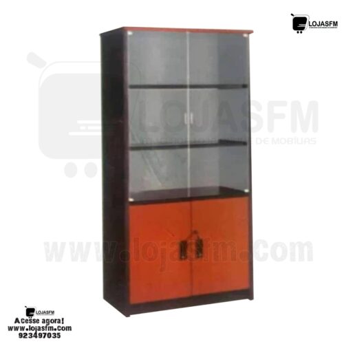 Armário de escritorio em madeira com 4 porta 2 de vidro e 2 em madeira produto novo com direito entrega e montagem