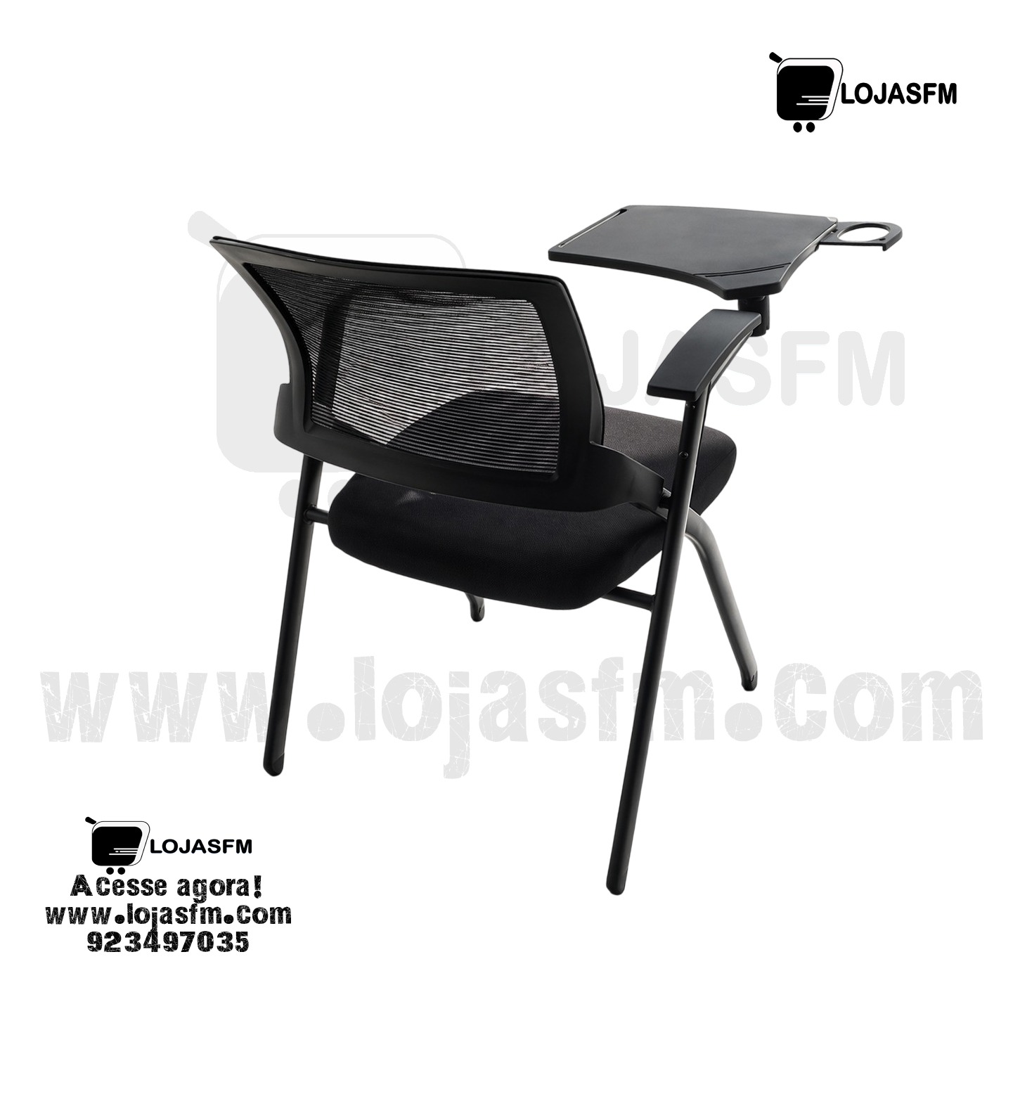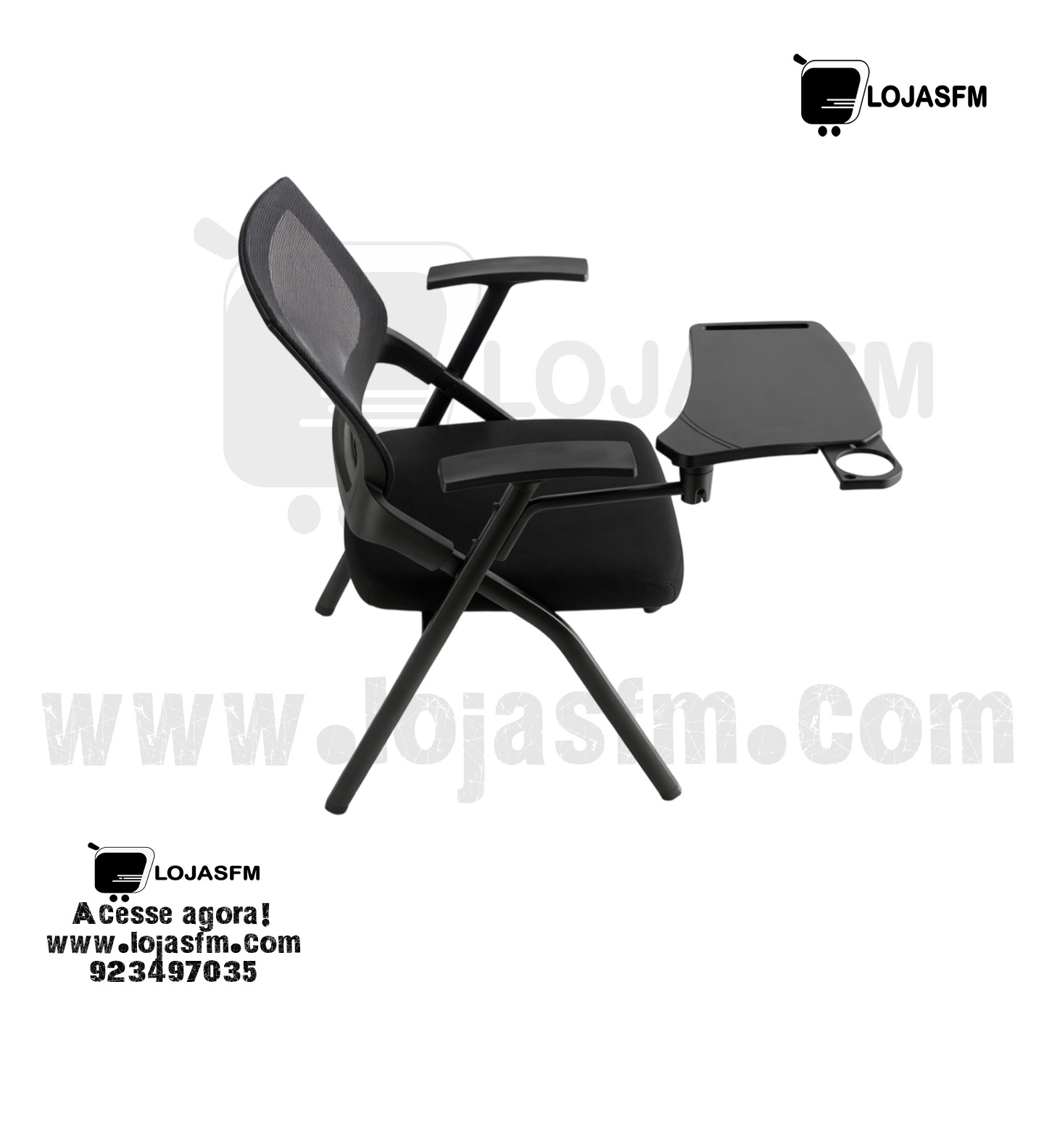 Fabricada com estrutura metálica resistente e assento acolchoado, garante maior ergonomia durante longos períodos de utilização. A prancheta lateral é dobrável e perfeita para apoio de cadernos, laptops ou escrita.