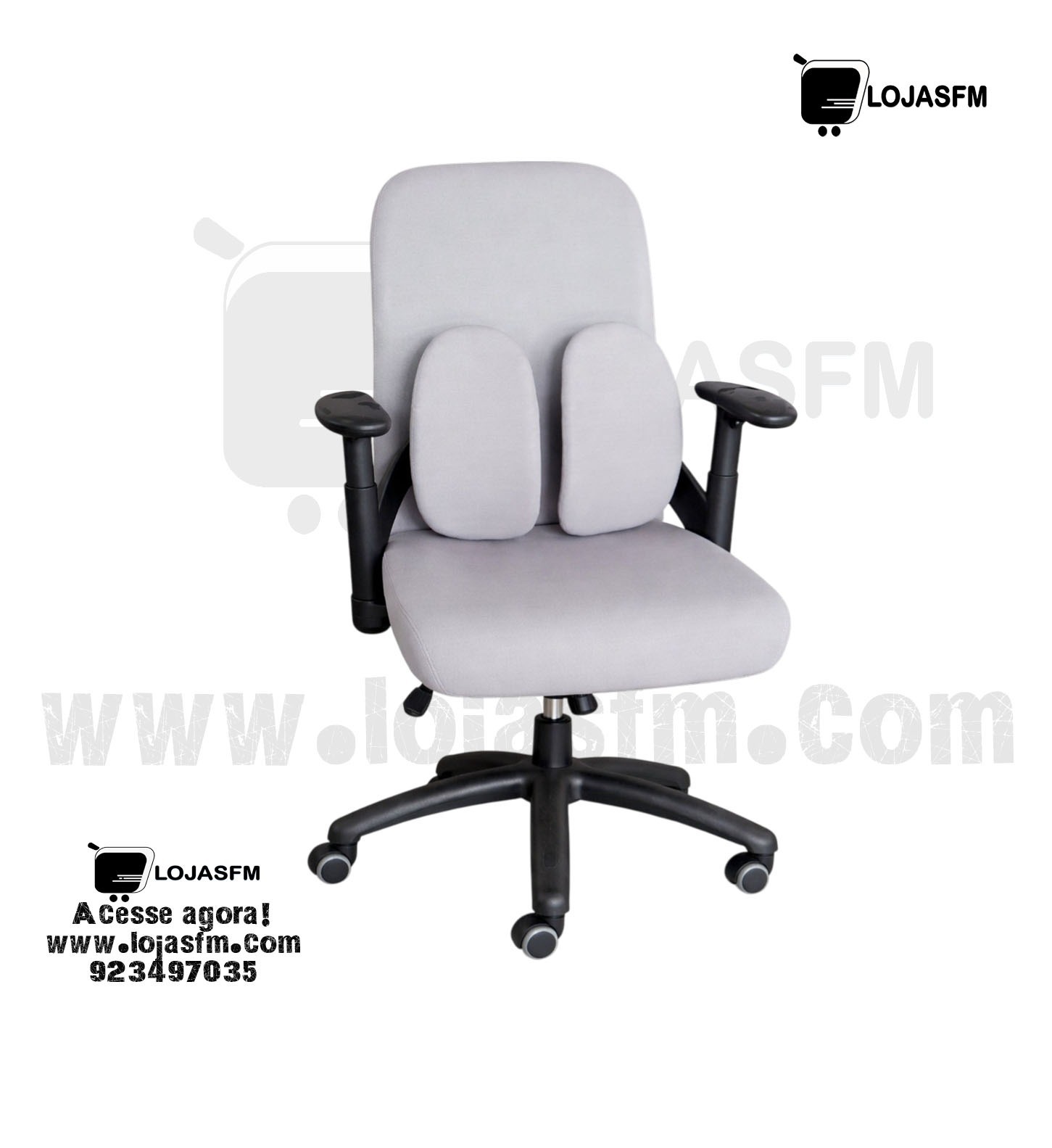 A Cadeira giratória de Escritório Ergonómica com Encosto Duplo foi projetada para oferecer conforto e suporte ideal durante longas horas de trabalho. O seu design moderno conta com apoio lombar duplo, que ajuda a manter uma postura correta e reduz o cansaço durante o dia.