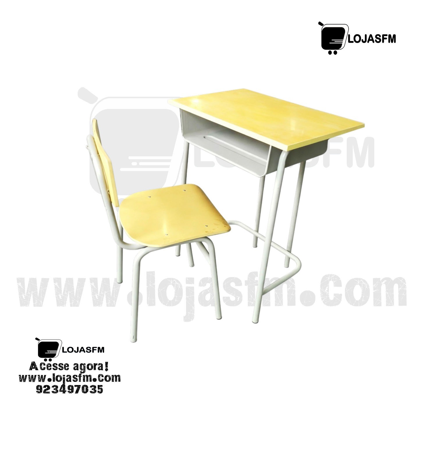 Com tampo em MDF de alta qualidade (60cm x 40cm) e estrutura metálica resistente, esta carteira oferece excelente estabilidade para uso diário. Acompanha cadeira ergonómica, proporcionando maior conforto ao aluno durante as atividades.