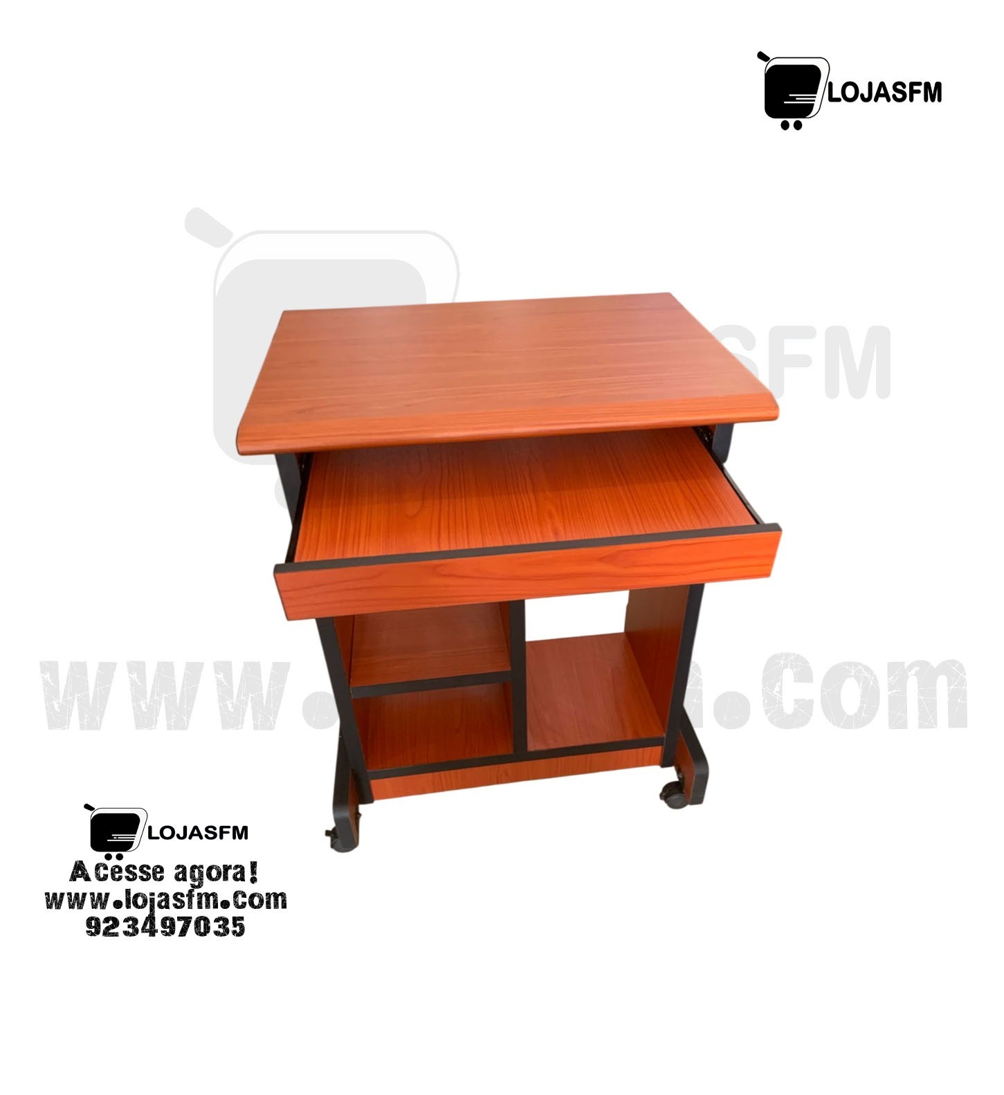 Mesa de computador funcional e prática, ideal para ambientes residenciais ou corporativos. Produzida em madeira com acabamento em tom castanho avermelhado e estrutura metálica preta, oferece: