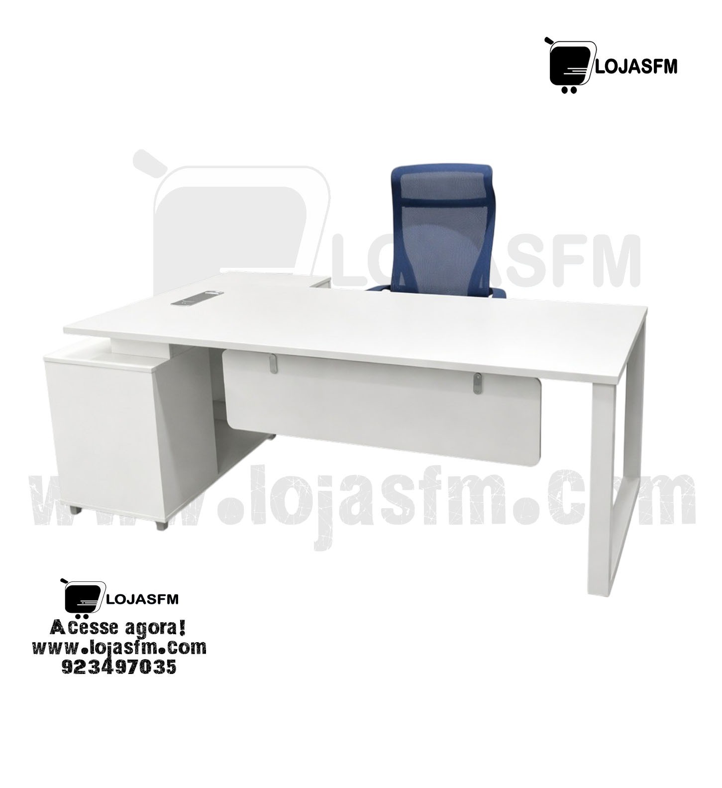 Transforme o seu espaço de trabalho com esta elegante secretária executiva em formato L, ideal para escritórios modernos e funcionais. Com acabamento em branco e estrutura resistente, oferece ampla área de trabalho e um módulo de arrumação integrado com gavetas e porta com fechadura, garantindo organização e segurança.