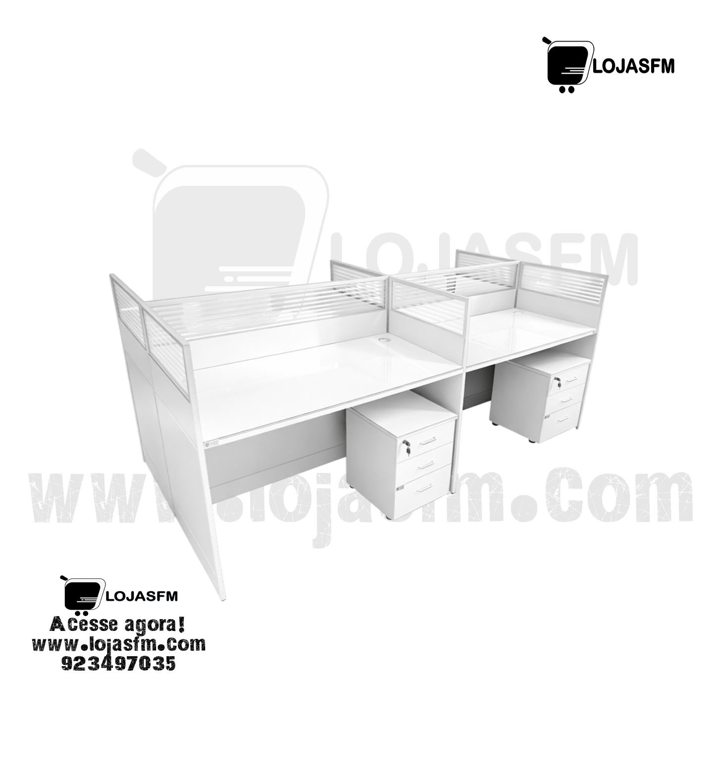 Secretária ilha moderna, projetada para acomodar até 4 utilizadores em ambiente corporativo. Com tampo branco de alta durabilidade e divisórias semi-privativas, garante organização, conforto e produtividade no dia a dia.